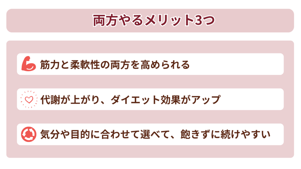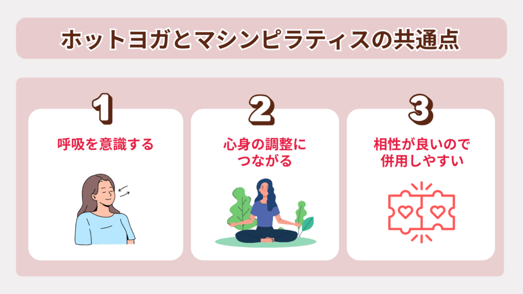 ホットヨガとマシンピラティスを両方やる場合、以下3つのメリットが得られます♪