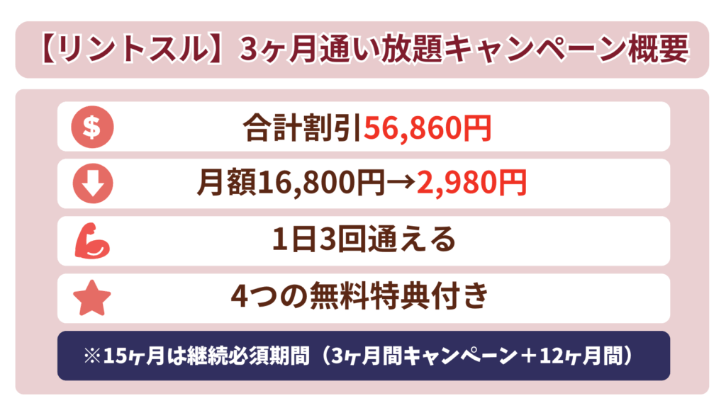 【2025年11月最新】 リントスル 3ヶ月通い放題キャンペーンの概要